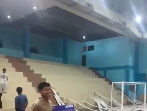 Kejadian itu sempat membuat para penontong yang ingin menyaksikan turnamen futsal panik dan berlarian meninggalkan tribun.
